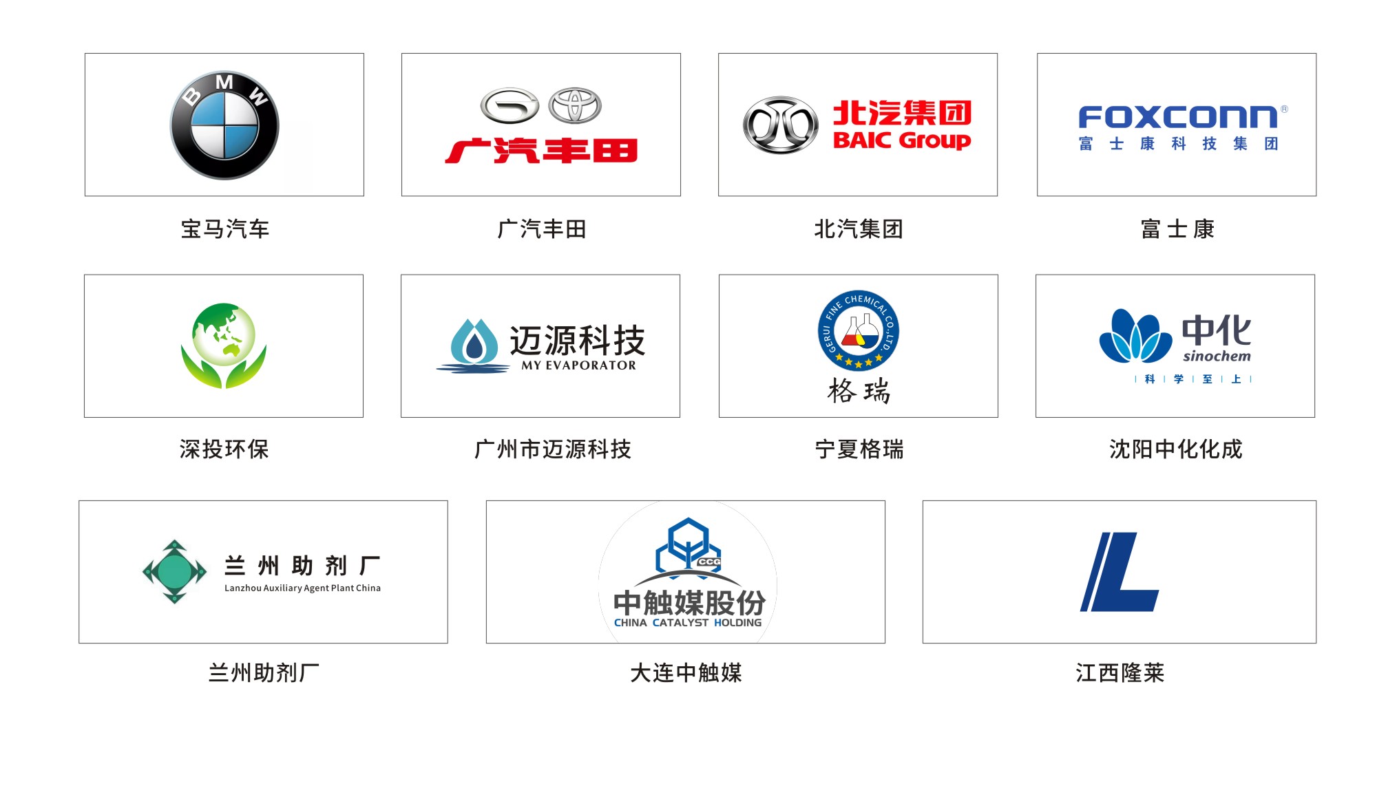 目前,公司已在成都、大連、蘇州、內(nèi)蒙古等地設(shè)立了辦事機構(gòu),服務的客戶包括深投環(huán)保、寶馬汽車、富士康、廈門嘉戎、寧夏格瑞,蘭州助劑廠、江西隆萊、大連中觸媒等行業(yè)內(nèi)領(lǐng)頭企業(yè),在國內(nèi)落地項目有170多家。